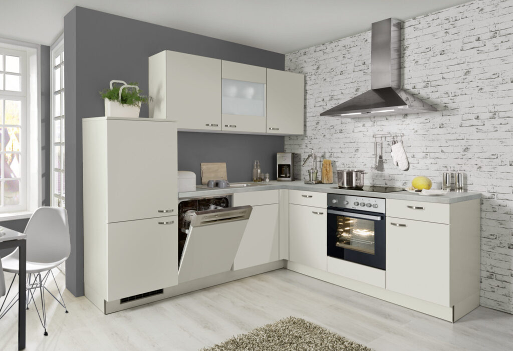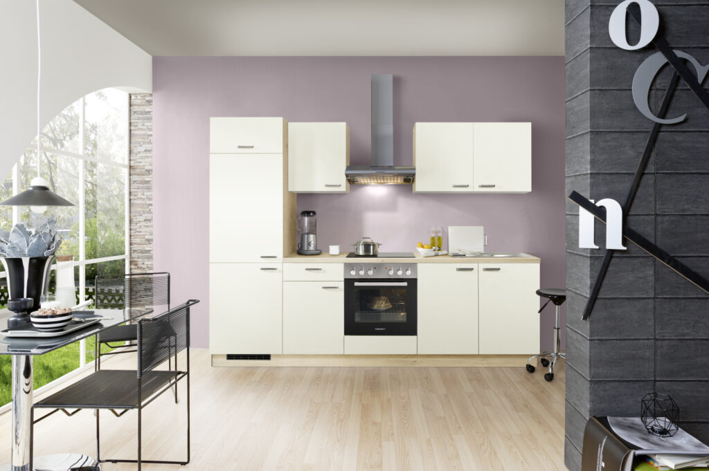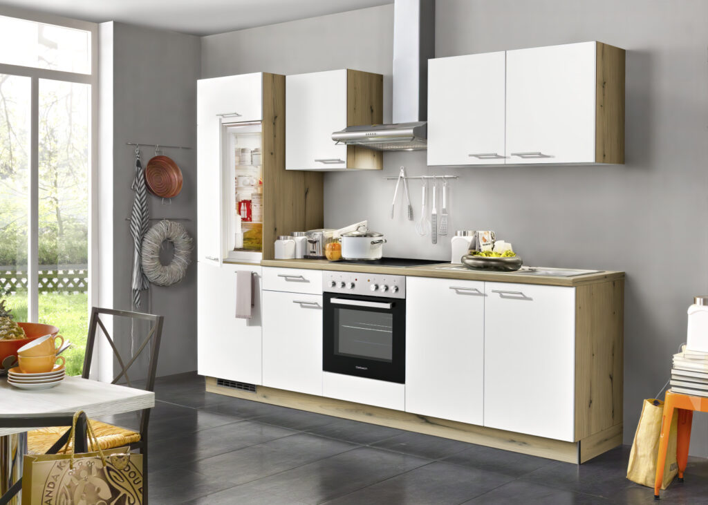 Optimal vorgeplant und farbig abgestimmt. Mit einem Klick bekommst du eine komplette Küche inkl. E-Geräten und Mischbatterie.