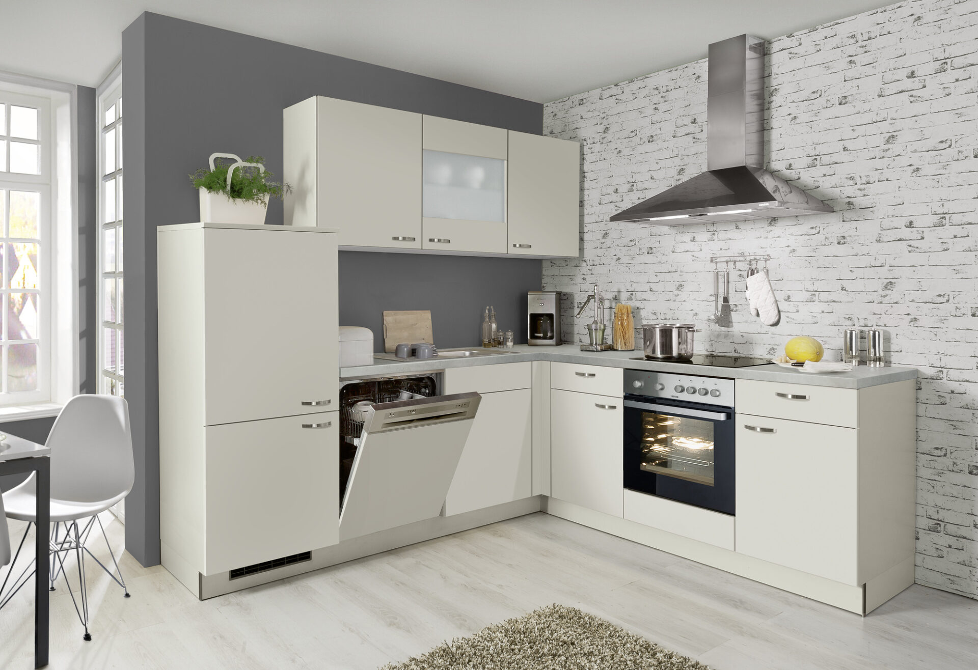 EXL245M501GS | Front: Hellgrau Matt | Korpus: Weiß | Platte: Weiß Steinstruktur